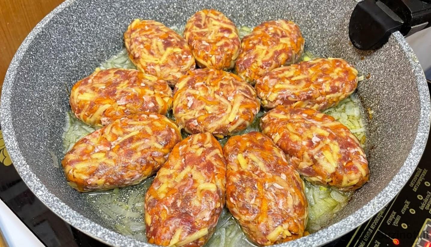 Imame bet kokį faršą, pagardiname druska, pipirais, prieskoniais ir dedame ant baklažanų juostelių.