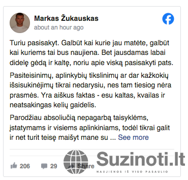 Žukauskas pabrėžė, kad nenori teisintis ir tikisi tapti pavyzdžiu kitiems: