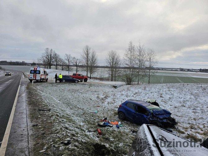 Po susidūrimo „Mazda 2“ nuvirto nuo kelio.