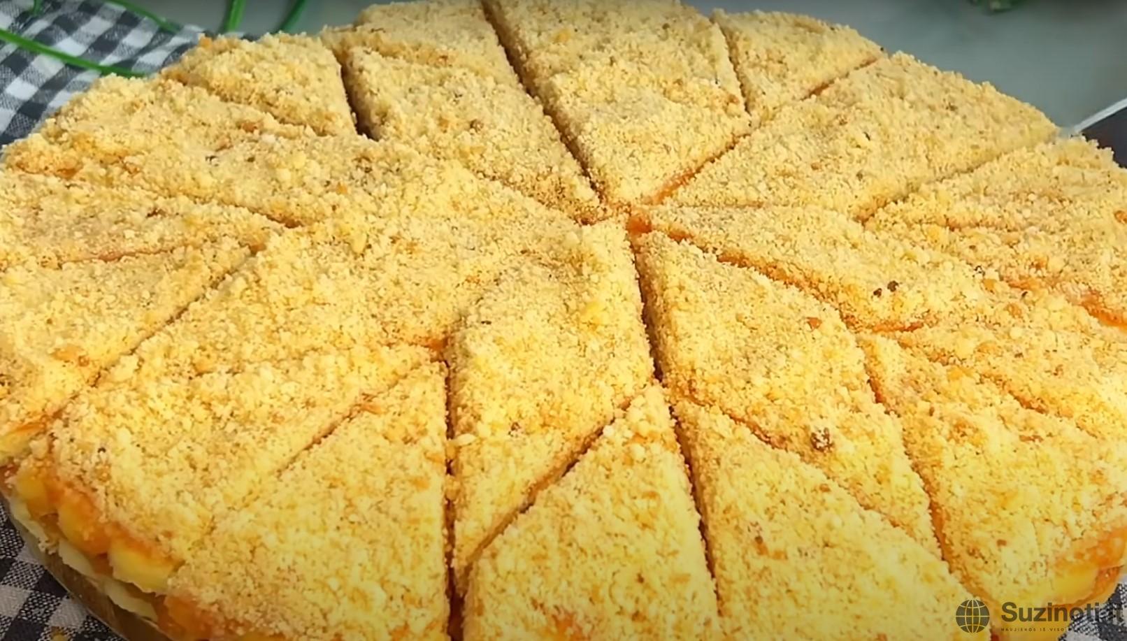 Palikite pyragą mirkti 7-8 valandas. Iš nedaug produktų gausite paprastą saldų pyragą.