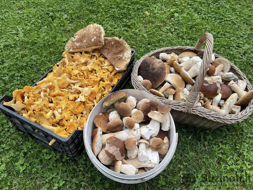 Šakių ir Kazlų Rūdos miškai Rasą šįkart apdovanojo karališku derliumi – trys pintinės pilnutėlės baravykų, raudonikių, voveraičių, šilbaravykių ir net makavykų. „Miškas šiemet labai dosnus – reikia tik gerų batų, krepšio ir kantrybės“, – sako ji, rodydama savo laimikį.