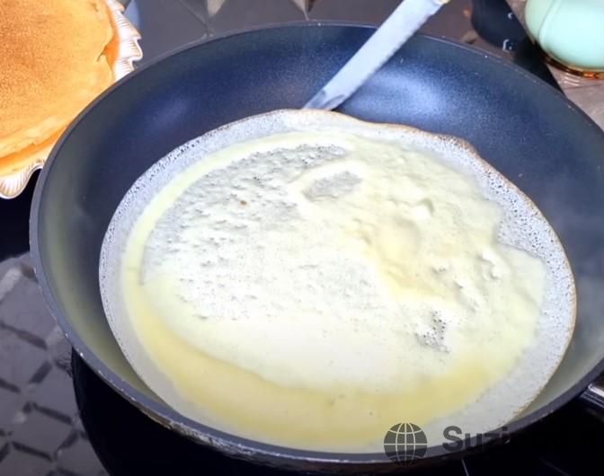 Įkaitinkite keptuvę ant stiprios ugnies. Kepkite blynus iš abiejų pusių, kol lengvai pagels.