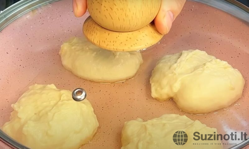 Keptuvėje įkaitinkite šiek tiek aliejaus ir įdėkite šaukštą tešlos. Po dangčiu patepkite blynus ant silpnos ugnies 3-4 minutes iš kiekvienos pusės.