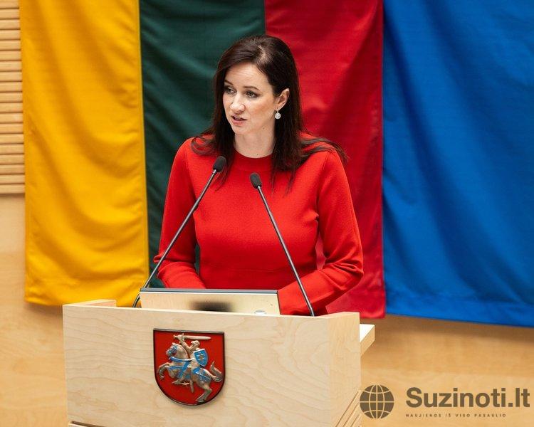 „Mano didžiausia svajonė – kad kadencijos pabaigoje galėčiau vėl atsistoti prieš jus ir pasakyti: mes nudirbome svarbius darbus. Noriu dirbti su visais – be epitetų ir juodinimų“, – iš Seimo tribūnos kalbėjo naujoji premjerė.
