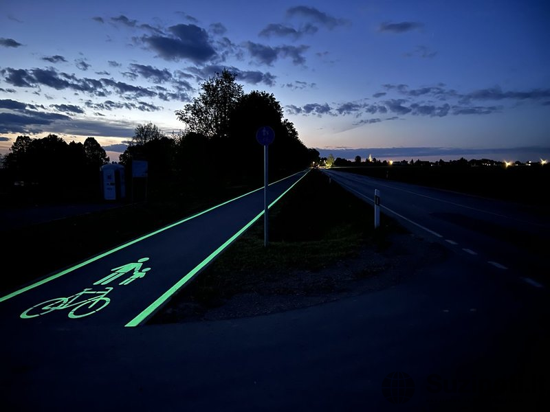 Kauno–Žeimių–Šėtos kelyje, šalia esančiame dviračių take, bendrovė „Via Lietuva“ išbandė specialius fluorescencinius dažus. Jie tamsoje spindi ir leidžia geriau orientuotis neapšviestose atkarpose.