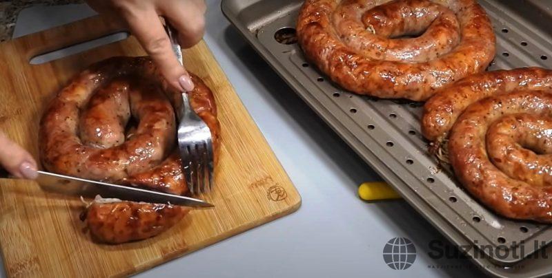 Suformuokite dešrą į žiedą ir keliose vietose pradurkite iešmeliu, kad išleistumėte orą. Sudėkite dešrą į kepimo indą arba ant kepimo skardos.