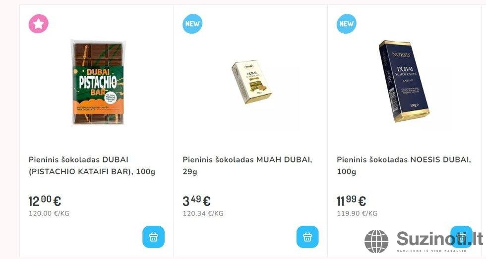 Tuo metu internetinėje parduotuvėje 220 g plytelė Dubajaus šokolado atsieis jau 16 eurų.