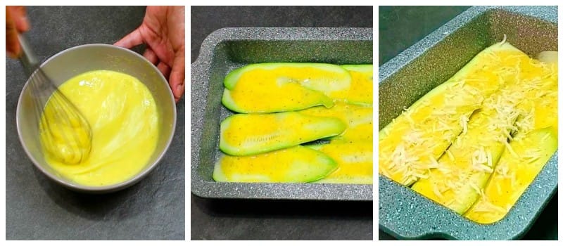 Toliau kiaušinių masę užpilu ant cukinijų.
