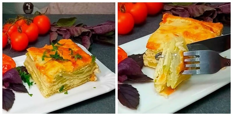 Ir tęsiu taip pat: cukinijų sluoksnis, kiaušinių įdaras, sūris ir t.t. Likusį sūrį ištepu ant paskutinio sluoksnio ir siunčiu formą į iki 180 laipsnių įkaitintą orkaitę apie 30-35 min.