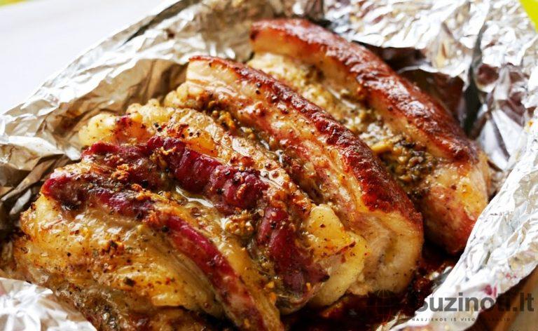 Palikite kiaulienos taukus folijoje, kol atvės. Galite juos patiekti net šiltus folijoje.