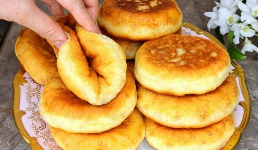 Kiekvieną pyragą lengvai išlyginkite. Keptuvėje su dideliu kiekiu augalinio aliejaus apkepkite pyragėlius iš abiejų pusių iki auksinės rudos spalvos. Pyragai turi būti dedami į aliejų siūle žemyn.