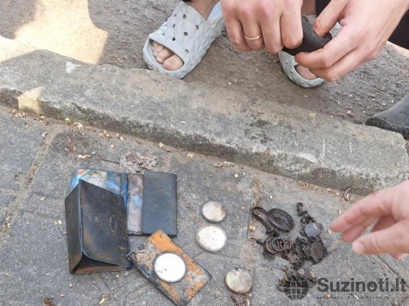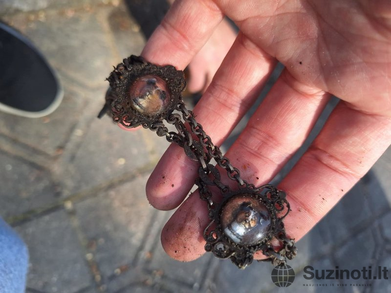 „Pamačiau seną kojinę – pasirodė įdomi, tad iškėliau. Atsidarai – o ten visko: monetų, papuošalų… Žiedelis net galimai auksinis“, – pasakojo klubo vadovas Mantas Normantas. Pasak jo, tai vienas įdomiausių radinių per pastaruosius metus.
