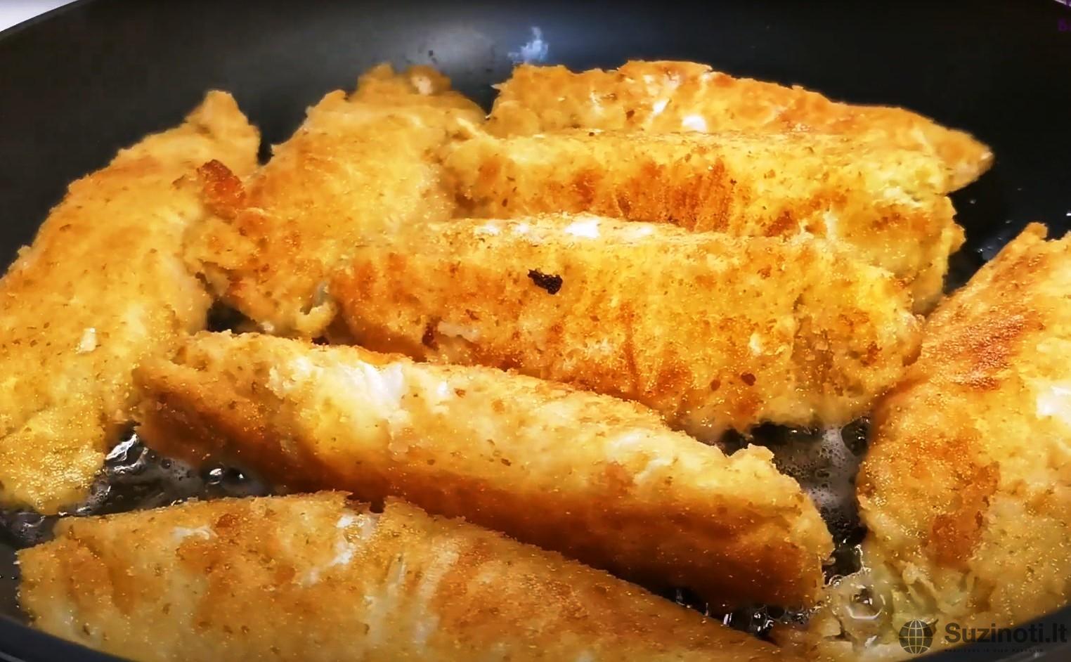Kiekvieną kopūsto lapų suktinuką pamerkite į kiaušinį, tada į džiūvėsėlius.
