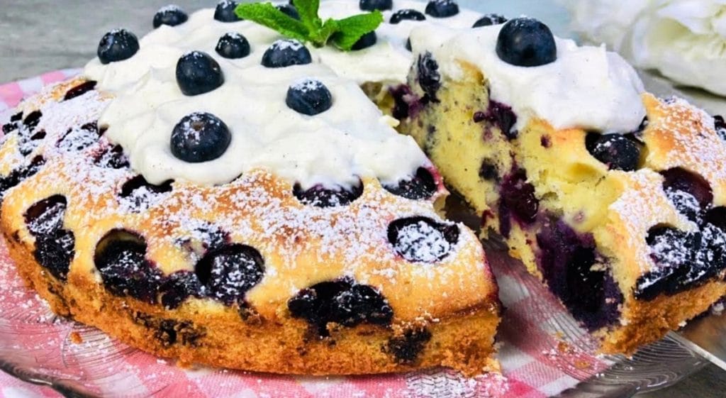 Skanus ir purus grietinės biskvitas, užpildytas saldžiomis mėlynėmis. Tokiam pyragui neatsispiria net didžiausias gurmanas ir žinovas.