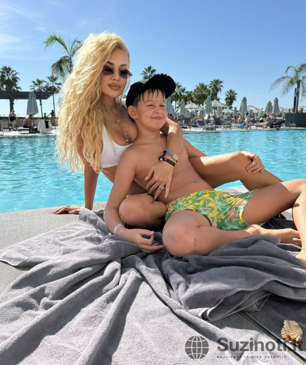 Kitame įraše ji pasidalijo nuotrauka su sūnumi. Jiedu smagiai leido laiką prie baseino ir mėgavosi saulės šiluma.