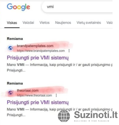 - Visada tikrinkite, ar interneto svetainės adresas atitinka oficialų (pvz., www.vmi.lt).