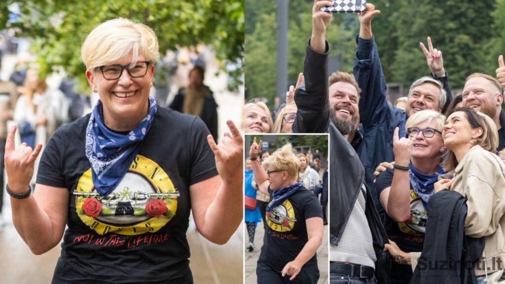 Roko dvasia alsuojanti I.Šimonytė pasirodė pasipuošusi marškinėliais su grupės „Guns N’ Roses“ simbolika ir ryšėjo skarelę.