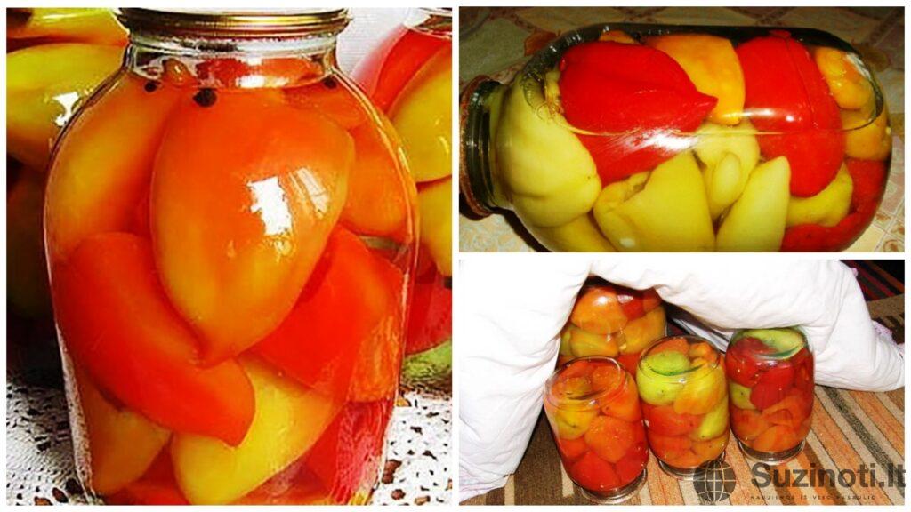 Sterilizuokite stiklainius ir po vieną sudėkite paprikas į stiklainį.