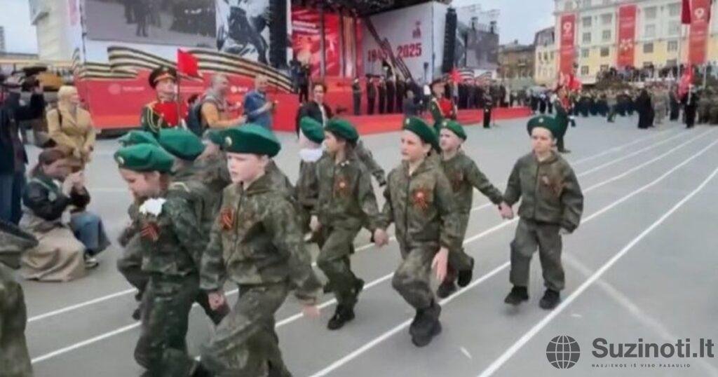 Čia esą žygiuoja vaikai ir iš Baltarusios, ir iš okupuoto Donecko, ir net svečiai iš Šiaurės Korėjos.