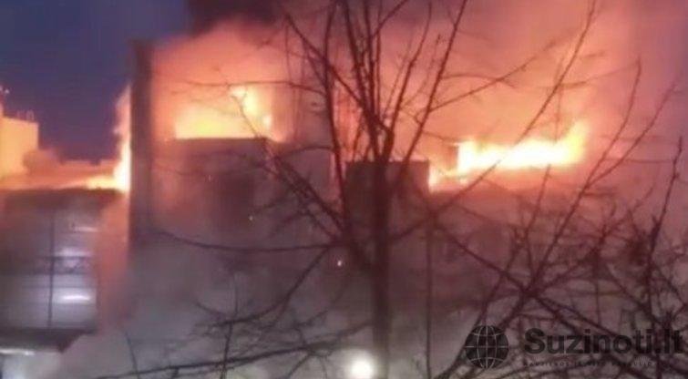 Rusijos „Telegram“ kanaluose pasirodė vaizdo įrašai, kuriuose užfiksuotas degantis prekybos centras.