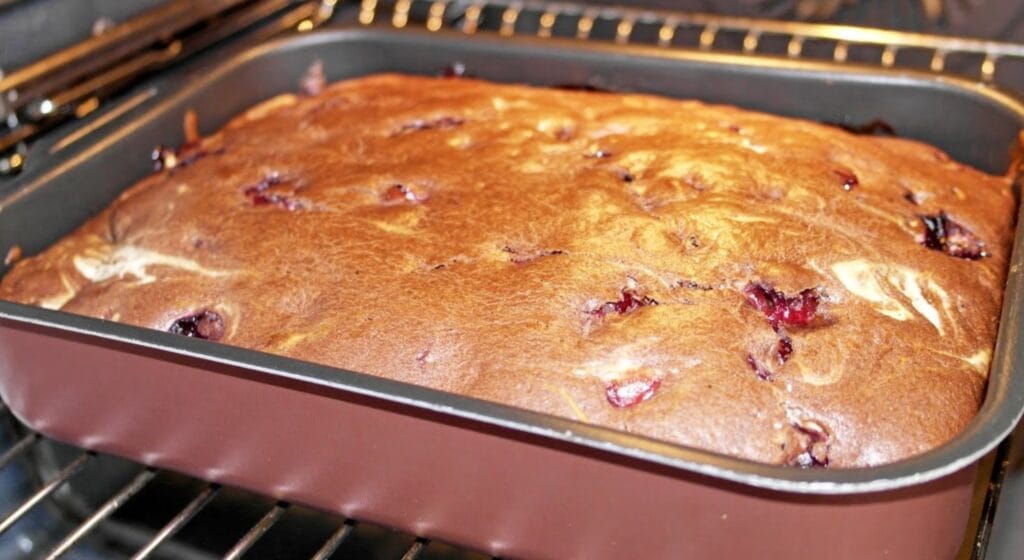 Rezultatas – puikus desertinis pyragas su vyšniomis ir varške. Šis pyragas gali būti papuoštas glajumi arba kreminiu kremu, kad sukurtumėte pyragą.