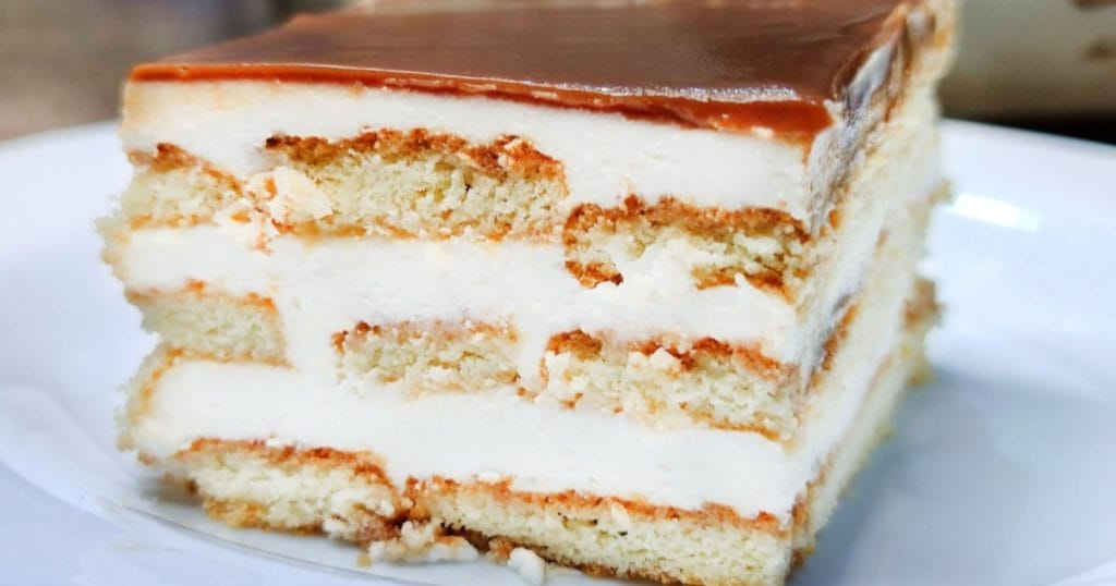 Išskleistus sausainius apibarstykite skysta kakava ir viską užtepkite ⅓ kreminio sūrio. Ant jo vėl uždėkite sluoksnį sausainių ir vėl suvilgykite kakaviniu vandeniu . Taip pat atlikite kitą sluoksnį. Taigi dabar turite paskutinį sūrio sluoksnį, o ant jo bus šokoladinis glajus. Šokoladą sulaužykite į mažesnius gabalėlius, apliekite pienu ir padėkite į vandens vonią virti.