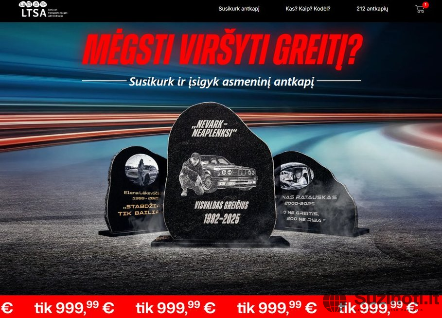 Kai greičio mėgėjų nesustabdo nei radarai, nei baudos, Lietuvos transporto saugos administracija (LTSA) nusprendė eiti kitu keliu – per humorą su tamsiu atspalviu. Nauja kampanija socialiniuose tinkluose kviečia greitį dievinančius vairuotojus… susikurti savo antkapį.