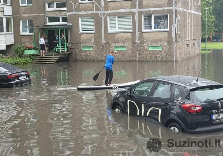 Klaipėdos situacija nepaliko abejingų – mieste buvo fiksuojami užtvindyti kiemai, o automobiliai įstrigę vandenyje.