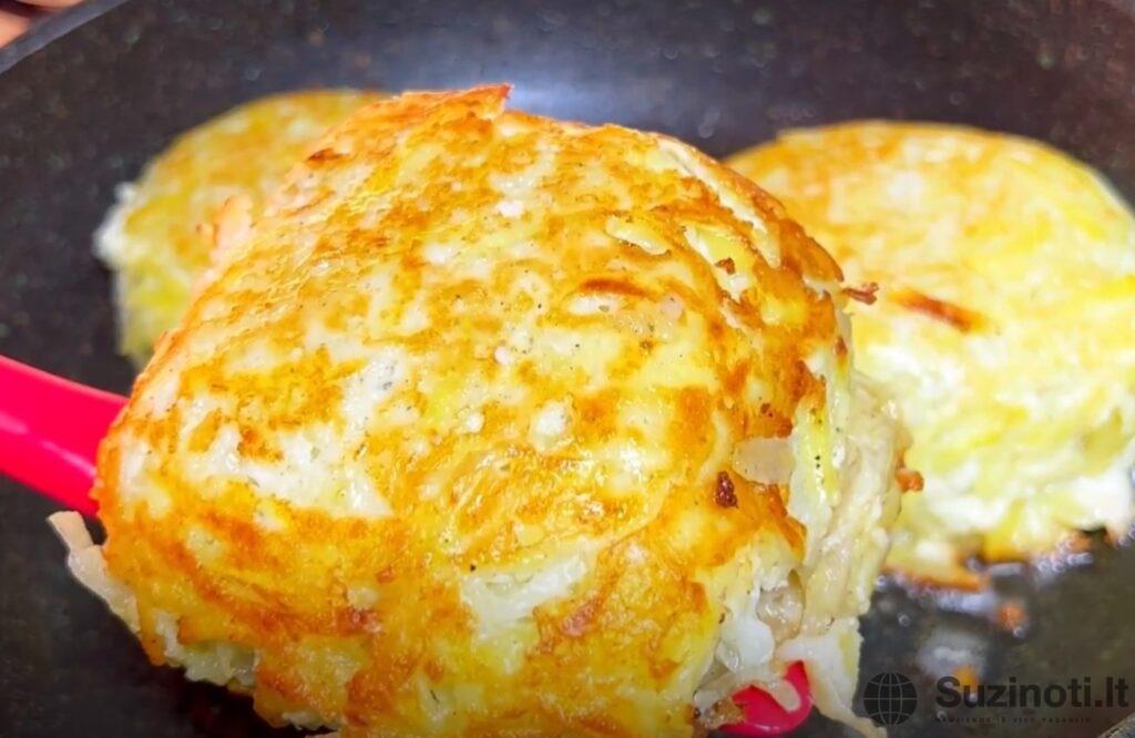 Kepkite mažus plokštainiukus, kol bulvės įgaus auksinę plutelę
