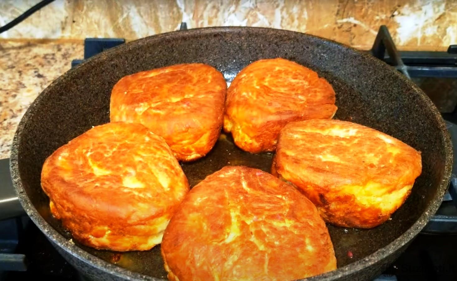 Keptuvėje įkaitinkite augalinį aliejų, sudėkite sūrio pyragėlius ir kepkite iš kiekvienos pusės po 2-3 minutes.