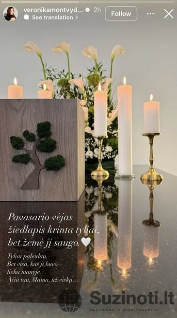 Čia paviešinusi baltų žiedų ir žvakių nuotrauką, Veronika parašė širdį veriančius žodžius.