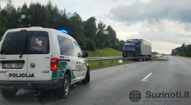 Magistralėje Vilnius–Panevėžys vos išvengta didelės nelaimės: nuo kelio nulėkė vilkikas ir vos neįskriejo į priešpriešinę.