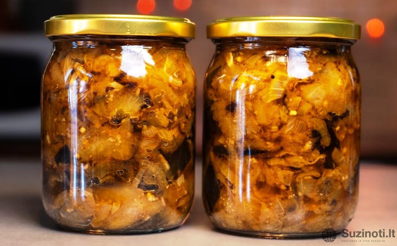 Belieka tik sudėti baklažanus į stiklainius, užpilti viršūnėles likusiu aliejumi. Sandariai uždarykite stiklainius ir palikite iki žiemos arba 7-8 dienoms.