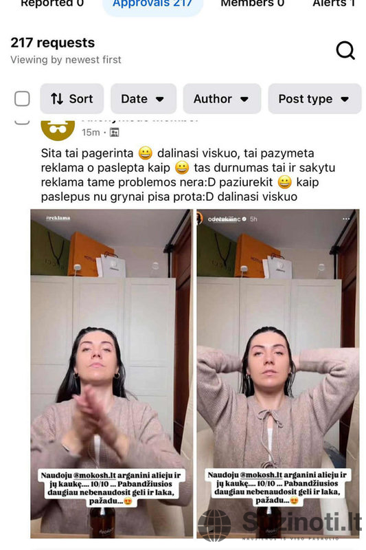 Kaip teigia O.Kilinc, socialiniame tinkle „Facebook“, grupėje „Mūsų plaukai ir viskas apie juos“ Ą.Misiukevičius norėjo paskelbti anoniminį įrašą. Jame jis rašė, kad Odeta dalijasi viskuo, nors ir žymi reklamą, tačiau žymę paslepia. Taip pat komentare yra ir necenzūrinės leksikos. Tačiau šis įrašas paskelbtas nebuvo, o grupės administratoriai persiuntė šį komentarą Odetai, kuri nusprendė situaciją paviešinti.